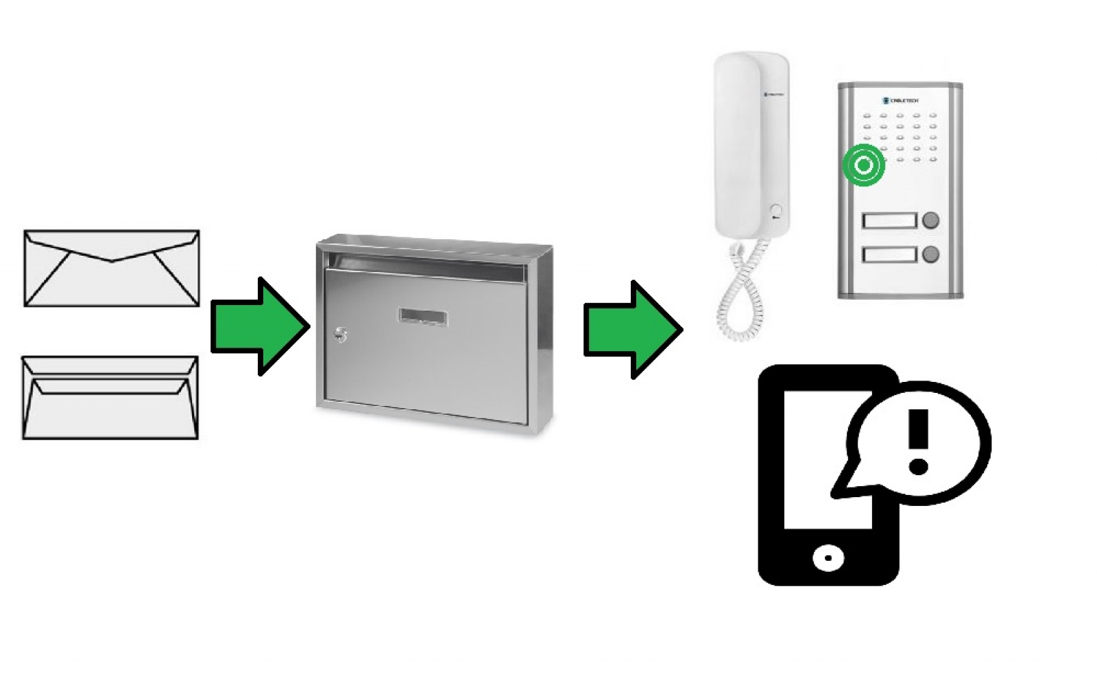 Poštovní schránka, jež informuje majitele o obdržení poštovní zásilky prostřednictvím krátké SMS zprávy a rozvícením LED kontrolky na domácím interkomu.